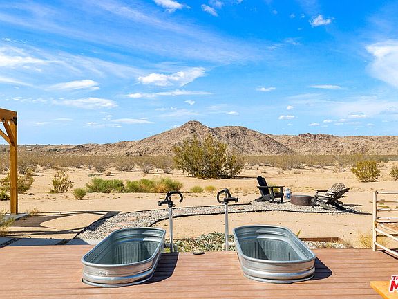 At the end of a fully paved road sits this 1,872 sq.ft. 3BD/2BA, fully furnished and recently remodeled Joshua Tree home. From either the front door or the direct access from the garage, one is greeted by a large open living space. Just off the dining area is the separate kitchen area with newer stainless-steel appliances and a large window to take in the mountain views. On one side of the home is the primary suite with a walk in closet and private bathroom. The other side of the home is rounded out by two additional bedrooms and a full-size bathroom. Step outside to the back where various entertainment hubs are aplenty. Enjoy gourmet meals from the built-in BBQ area under the gazebo. A hot tub and cold plunge baths provide aquatic activities in all climates. Finally, if you are looking to just relax, one can swing in the breeze on a hammock or get cozy around the firepit. Property has been used as a STR, and financials are available. Sitting on over two (2) acres of land, this home is perfect for those looking to balance privacy with easy access to the town's amenities. NOTE: For paved road access, please use Sunfair Road for access to Broadway. DO NOT use Sunburst Avenue.