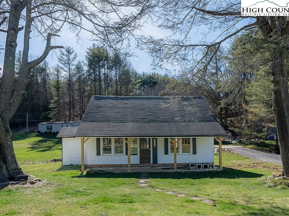 Cute cottage/farmhouse style home with creek frontage on the rear of the home. Unfinished remodel, perfect for a contractor or a DIYer looking for a project. Sitting on 2.5+/- acres of land with other potential building sites and older Barn. Would make for a great rental or investment property! Spacious upstairs and down with a lot of flexibility for how the space is used. Repaired structural elements including a fully repaired/wrapped foundation, reframed primary load bearing wall, and new 6x6 support columns on the front porch. New 2BR septic installed in 2021, well produces over 70 gallons per minute. Pex plumbing, original electric in place. Located less than a mile from the New River, 10 minutes from Jefferson/West Jefferson, 30 minutes from Boone and Wilkesboro