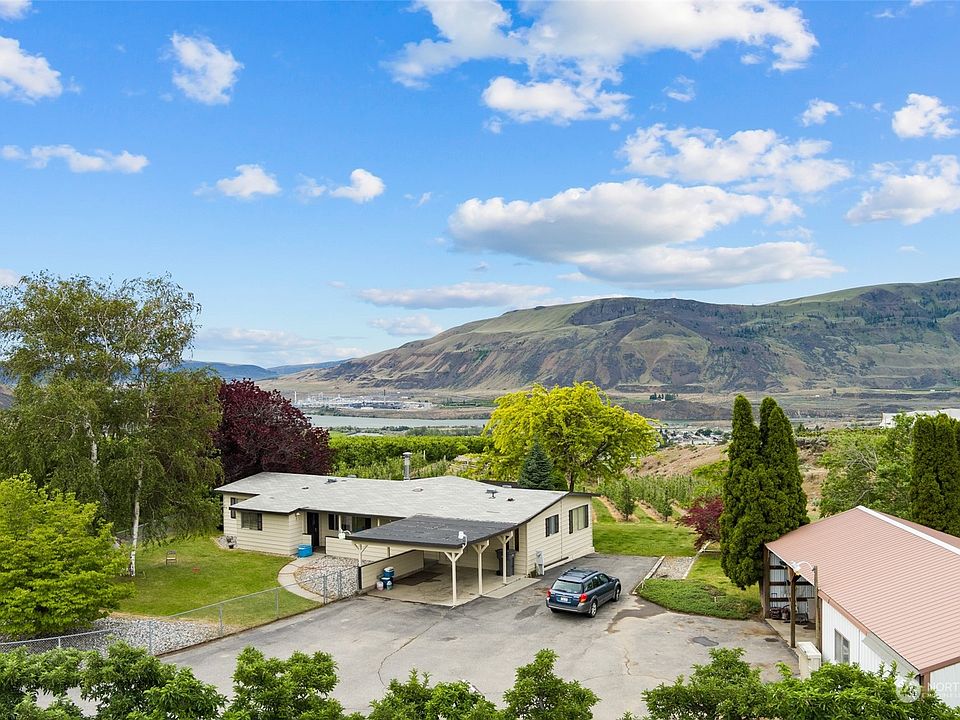 Country living with an amazing view looking out over the Columbia River and the Rock Island Ponds. Tranquil setting with space for critters, 20x40 shop with power plus dbl carport. Fenced yard, large deck system made for quiet evenings and looking at night stars. Southern exposure plus irrigation for the gardener. Surrounded by orchards and at the end of a private country lane. Great opportunity to add some TLC and add equity to hard to find affordable country living. .25 acre of trellised honeycrisp apples or convert to pasture or a vineyard. Adjacent 6.6 acre property available to this buyer for $375,000. Seller reserves 2022 crop.