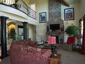 Magnificent home & acreage.Many amenities:hickory HW floors & cabinets,25ft ceiling in living area,floor to ceiling stone FP,awesome kitchen,breakfast room,formal dining room,sunroom,MBA w/heated tile floors,double headed walk-in shower,jacuzzi tub,family room w/wet bar.Geo Therm Heat/Air system.Sec.system.40x60 barn,cave,springs,3 ponds & fenced.Will sell house & 20 Acres for $599,000.