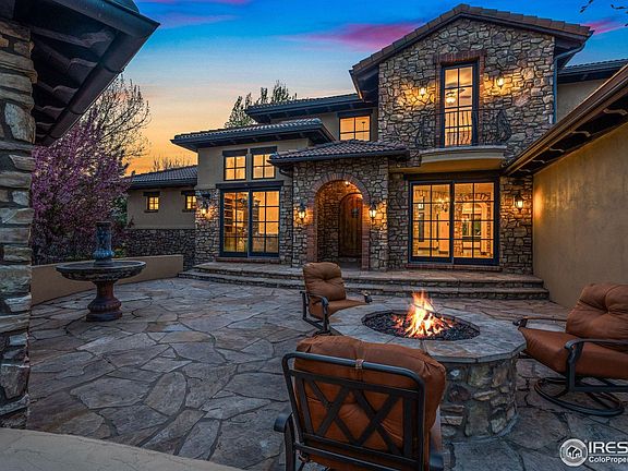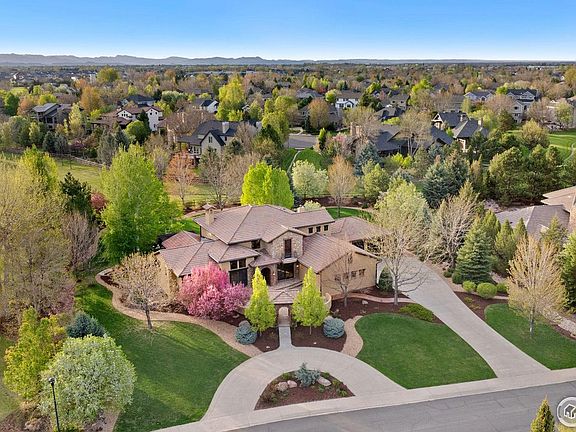 Situated in one of Fort Collins' most desirable locations, this home offers a rare unparalleled 1 acre lot with lake views from the front patio and a private oasis in the backyard. Built by Brannen Construction and Design this home boasts hand hewn wood floors and stone accents along with new wool carpets, new paint and all new LED lighting. The floor plan lives like a spacious ranch with main floor living and a spacious walk-up basement with theater, gym and a 1000 bottle temperature-controlled wine vault. The homeowner also has provided a new $100,000 tile roof, 3 new furnaces and 3 new air conditioning units so the home systems are brand new. The generous kitchen space is home to Wolf and Sub-Zero appliances with a convenient walk-in pantry and many bells & whistles including a filtered water and hot tap. Multiple eating areas with a breakfast and formal dining space plus a handsome private office overlooking the front courtyard and tiered fountain. The bedrooms all offer ensuite bathrooms and spacious closets while the primary retreat is inviting and has its own private access to the backyard. This magnificent home backs to a generous green belt with mature landscaping, offers the utmost in privacy and includes a built-in backyard Wolf grilling station. An added bonus is the over 1500 sqft 4 car garage, which offers plenty of space for vehicles and all the Colorado toys.The sound of the backyard cascading waterfall throughout the many living spaces is the ultimate cherry on top of this estate! This home is a rare offering and one that is not to be missed.