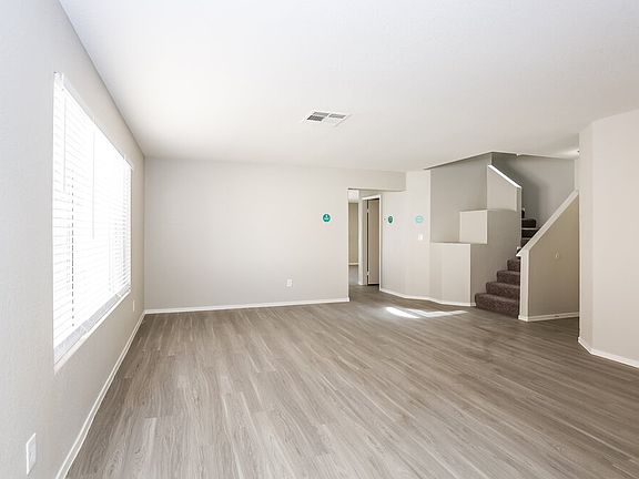 This renovated four-bedroom rental home sits in Green Hills in Las Vegas, Nevada. A great room with a fireplace and fans welcomes guests in this open floor plan house. Prepare dinner and entertain in the kitchen with abundant counter space and the latest stainless steel appliances. An indoor laundry room connects conveniently to the garage. A slider in the living room allows a view of the enclosed backyard, which features drought-resistant landscaping. Relax after a hard day in the master bath's oversized tub. Garage space is ideal for two cars and storage. Schedule a tour of this two-story home today.