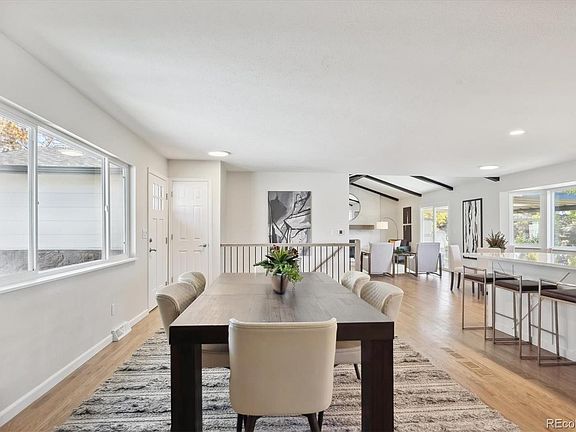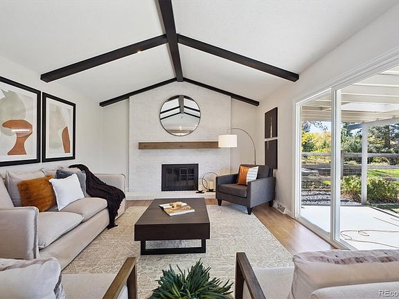 *HUGE PRICE IMPROVEMENT* *QUICK CLOSING* Situated on a premium corner lot in the heart of Cherry Park, this entirely remodeled ranch perfectly blends contemporary finishes with timeless elegance. All new windows, doors, exterior paint, and roof welcome you from the curb, along with a clean, mature landscape. Step inside to be greeted by beautiful laminate wood floors, curated finished, and an effortless open floorplan. The heart of this home is the remodeled kitchen featuring a grand 9-foot center island, granite counters, herringbone tile backsplash, a stainless steel appliance package, and white soft-close cabinetry. The kitchen seamlessly transitions into the formal dining area, creating a harmonious space, perfect for entertaining guests or intimate family dinners. The beautiful family room boasts vaulted ceilings with exposed beams, a wood-burning fireplace, and glass sliding doors that open to your backyard oasis. The covered patio overlooks a private professionally landscaped backyard with mature trees and views of the park directly across the street. Retreat to your primary suite with an ensuite bathroom. Two secondary bedrooms and a fully renovated bathroom round out the main floor. The lower level of this home is an entertainer’s dream, featuring a spacious den with ample room for a home theater or gaming tables. A private 4th bedroom, a bathroom, large utility/laundry space, and a finished storage room or optioned home gym. Situated across from Cherry Park with a playground, sports courts, and a great sledding hill, and only minutes from Cherry Creek schools, shopping, and dining while relishing the tranquility of a neighborhood known for its sense of community and charm.