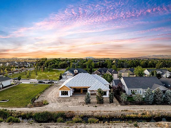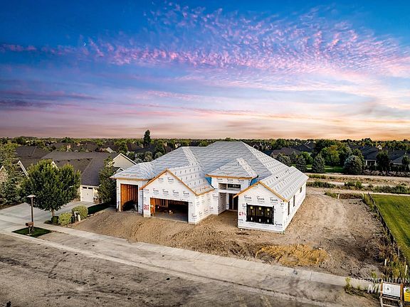 No direct rear or side neighbors! This 3,007 sq ft single-level home—designed by renowned architect Trey Hoff—blends timeless style with modern livability. Featuring 3 bedrooms plus a flex room, each with its own en-suite bath, plus a half bath for guests, it’s designed for comfort and privacy. The 1,177 sq ft boat bay garage offers abundant space for vehicles, toys, and storage. Inside, soaring vaulted ceilings flood the open-concept layout with light, showcasing quartz surfaces, designer tile, and rich cabinetry throughout. The chef’s kitchen is a showpiece with premium Thermador appliances, double ovens, and a spacious walk-in pantry. The primary suite is a private retreat with a spa-inspired bath, curated tilework, and generous walk-in closet. A versatile flex room adds space for an office, gym, or media lounge. Step outside to an expansive covered patio—ideal for entertaining or unwinding. Built by Eco Builders, this home offers refined finishes and an enviable Eagle location. *Completion December '24*