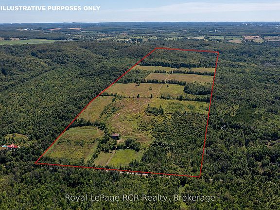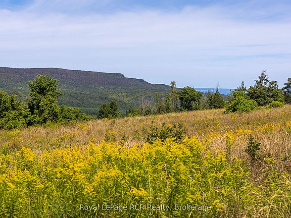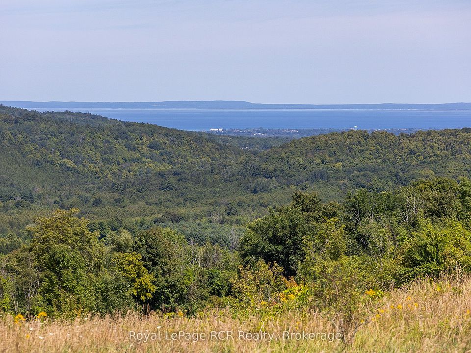 SPECTACULAR views down the Pretty River Valley to Georgian Bay, Blue Mountain and beyond. 144 acres in this coveted location is rare - with approximately 60 acres formerly used as hay and pasture and over 40 acres of exceptional maple bush. The land rises from the road with the lane going past the original farmhouse and bank barn, then levelling off where the views are unmatchable. Take a look at the ground-level photographs, not just the drone photos, to see the incredible views this property has to offer.