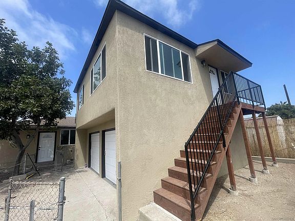 Tri-Plex Investors or Extended Families! Remodeled Duplex, each unit is 2 bedrooms, 1 bath w/ in unit laundry, along w/ plans already submitted to City for a 3rd, 2 bedroom, 1 bath unit via garage conversion to make this a premium tri-plex. Lot zoned R-2 Minor Multiple. Corner lot w/ driveway parking & separate fully fenced yards. Main house is approx 750sf w/ fireplace, separate dining room area & views of Downtown SD skyline from living room area. Both units have brand new windows, doors, flooring, custom tiled showers, ceiling fans, stainless steel appliances, central heating & A/C, cabinets, quartz counters, mirrored closet doors, & new paint inside & out! Only one neighboring home to the north. Property sits up on lot & cozy 2nd story unit has Mountain & Downtown views! Live in one & rent others, invest, or make it a family compound!