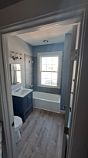 This apartment, located in a recently renovated building, features a brand-new kitchen and bathroom. The kitchen is equipped with new stainless steel appliances, including a dishwasher and garbage disposal, making meal prep and cleanup a breeze. The sleek cabinetry and modern finishes offer both style and functionality. The bathroom has been fully updated with contemporary fixtures, a spacious vanity, and elegant tile work. With ample natural light, hardwood floors throughout, and in-unit laundry, this apartment perfectly blends comfort and convenience.