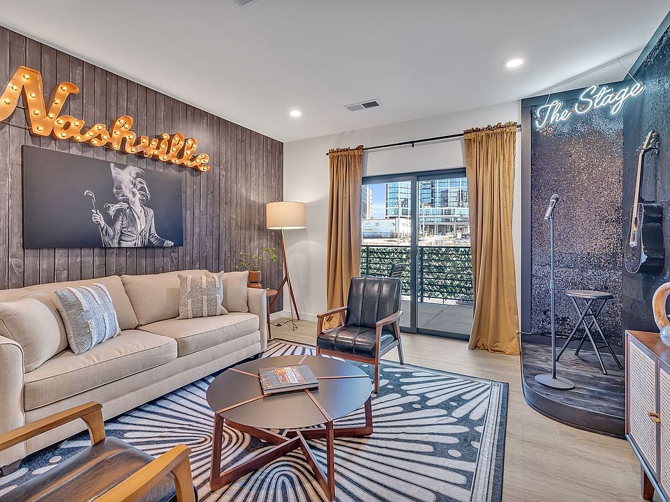 Welcome to The Stage at The Hyve, a fully furnished, completely turnkey investment property offering exceptional STR income potential plus powerful tax advantages, including eligibility for bonus depreciation and accelerated cost-segregation benefits often leveraged by STR owners. This designer 1-bedroom condo delivers a true “wow factor” with its custom-built stage, curated local art, high-end furnishings, king bed, queen sleeper sofa, smart TVs, fully equipped kitchen with a stocked Keurig bar, and a private balcony—every detail thoughtfully crafted to elevate guest experience and maximize nightly rates. Perfectly positioned just 0.7 miles from Nashville’s famous Broadway and steps from fan favorites like Bridgestone Arena, The Ryman Auditorium, Music City Center, Third Man Records, and numerous restaurants, bars, and entertainment staples, guests enjoy unmatched convenience and walkability. Located within the heart of downtown Nashville with premium amenities—including a heated pool with cabanas, Peloton gym, courtyard, grills, and multiple parking options—this property checks every box for both travelers and investors. With luxury interiors, top-tier décor, unbeatable location, and full turnkey readiness, this is one of Nashville’s strongest and most tax-efficient 1-bedroom STR opportunities. BUYER INCENTIVE: If new owner retains InJoy Nashville as designated property manager, InJoy Nashville will continue managing the STR at no management fee, with the owner only covering direct costs such as platform fees, cleaning and guest services. This will also allow the property to continue to be fully marketed with 5 star reviews and an established performance.