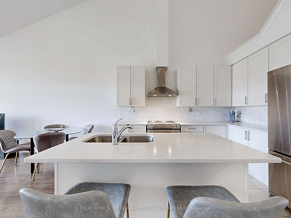 Stunning bright bungaloft backing onto Marina! Welcome to this beautiful and spacious 3 bedroom bungaloft featuring 3 bathrooms and a den - perfect for a home office or a guest room. Enjoy soaring cathedral ceilings and an abundance of natural light in this open - concept layout designed for both comfort and style. The modern kitchen boasts quartz countertops, a large center island, and stainless steel appliances, ideal for entertaining and everyday living. Step out into a serene backyard that backs onto the marina, offering peaceful views and a sense of waterfront luxury and also Backing onto walking trails, , and minutes to vibrant downtown shops and restaurants. This rare gem combines elegance, functionality, and location - dont miss your chance to own this exceptional home!