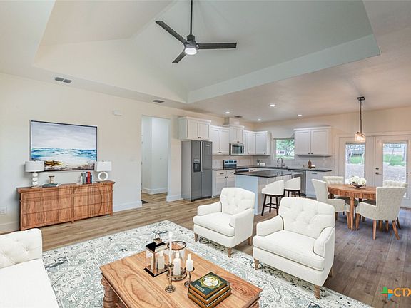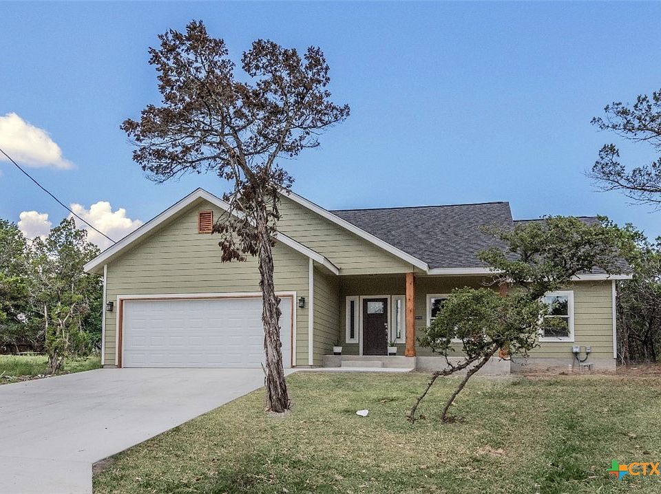 This one-of-a-kind, custom built, hill country beauty is ready for YOU! Secluded on a very quiet street with no one on either side (lot next door is on the market for sale), an amazing view of the hill country from the front porch and 2 boat ramps, 21 & 22 less than 2 miles away makes this a perfect place to call home! Featuring 3 bedroom, 2 full baths, 2 car garage, open floor plan with high ceilings. The kitchen offers custom cabinets, stainless steel appliances, built-in trash can holders, large island and an oversized pantry. Primary room is large with walk-in closet and full bath that provides a walk-in shower and a double vanity. Covered patio in the front and back, the backyard is seeded with winter grass. Location offers easy access to New Braunfels, San Marcos, Wimberly, Blanco, Bulverde and San Antonio. Do not miss this one of a kind, newly custom built home at Canyon Lake!