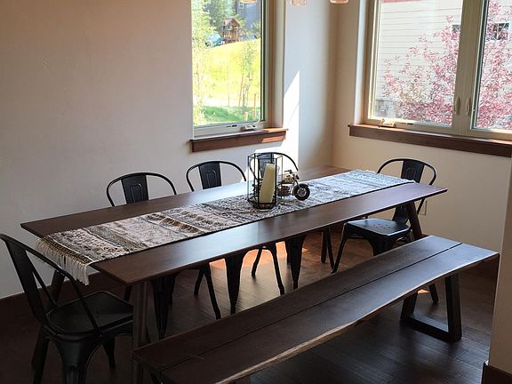 Large main level master bedroom with a walk in closet and washer/dryer for the master, also main level living-room with fireplace, large TV, and spectacular views of the ski mountain. off of the living room is a well sized deck off with table and gas BBQ. Upstairs is a 2nd family room with another large TV and two additional bedrooms, as well as a 2nd full capacity washer/dryer. A heated two car garage with space for 2 additional cars in the driveway. The house is fully furnished and ready to go. No pets.