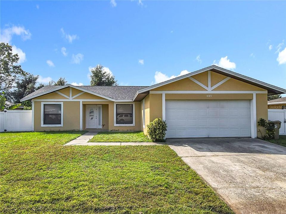 One or more photo(s) has been virtually staged. ROOF REPLACED IN 2023! This WELL-LOCATED, lovely single-family home features 3 bedrooms and 2 bathrooms on an oversized lot in the desirable Poinciana community. The open and functional layout features modern vinyl flooring recently installed in the kitchen and living areas. The kitchen includes stainless steel appliances and a cozy eat-in space filled with natural light. Enjoy peaceful afternoons in the enclosed porch—perfect for relaxation or entertaining—and take advantage of the fenced and spacious backyard with a shed for extra storage and endless possibilities. The garage has been freshly painted, adding to the home’s clean and well-maintained appeal. GREAT LOCATION!!! This home strikes the perfect balance between comfort and convenience. This house sits within a mile of the main shopping and dining center at Doverplum and Cypress Parkway, Poinciana Public Library, and much more. Everything you need is right at your fingertips! Schedule your showing today before it’s gone!