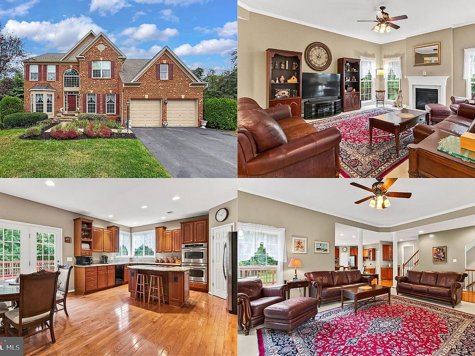 Nestled on a quaint cul-de-sac and backing to woodlands for ultimate privacy in the highly desirable Monroe Estates community, this stunning 5 bedroom, 3.5 bath brick-front colonial offers timeless curb appeal and thoughtful updates throughout. Step inside to find a bright and inviting floor plan featuring high ceilings with elegant crown moldings, hardwood floors, 2-fireplaces, dual staircases, an abundance of windows, and a spacious layout perfect for both everyday living and entertaining. A grand two-story foyer with a large arched window welcomes you home, to the right a bay window fills the formal living room with natural light. To the left, the formal dining room is accented by wainscotting and a tired candelabra chandelier adding refined style. The gourmet kitchen is a chef’s dream, showcasing custom 42-inch traditional and glass front cabinetry with trim package, granite countertops, a center island with electric cooktop, double ovens, stainless steel GE Profile refrigerator, and even a built-in desk and serving bar. The family room—enhanced by a cozy fireplace, ceiling fan, and an impressive 4’ bump-out—flows seamlessly from the kitchen, making it the heart of the home. A large private office/library on the main level provides an ideal space for working from home or schooling, while a powder room and large laundry/mudroom complete the main level. Upstairs, the luxurious primary suite boasts a deep tray ceiling with lighted ceiling fan, wall of windows with wooded views, a romantic gas fireplace that shares its warmth with a separate sitting area, and two walk-in closets for ultimate convenience. The ensuite bath features a dual sink vanity, water closet, sumptuous soaking tub and glass enclosed shower. Down the hall, 3 light-filled bedrooms, each with generously sized closets, share access to the hall bath. The fully finished walk-out lower level extends the living space with a multi-area recreation room with wet bar, media room with dimmer lighting, a 5th bedroom and full bath—perfect as a guest suite, plus plenty of storage. This home has been meticulously cared for by its owners and features numerous upgrades over the last 5 years for peace of mind: a new roof (2020), hot water heater and sump pump (2021), updated toilets and fixtures, newer washer, carpeting, and exterior lighting. An ADT wireless security system with cameras and sensors provides additional protection. Outdoor living is just as inviting with a large deck perfect for entertaining, all set on a lush lot spanning a third of an acre and backing to majestic trees. The location couldn’t be better—walk into Old Town Warrenton for shopping, dining, the farmers market and for special events, or enjoy quick access to major commuter routes and the Warrenton Aquatic & Recreation Facility. This exceptional home offers space, style, and an unbeatable location—truly a rare find in Monroe Estates!