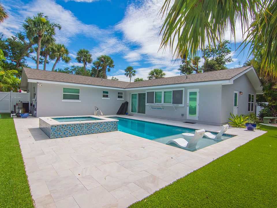 Central Beach beauty is available for the 2025 season. Grab this 3 bedroom 3 bath a short walk from downtown and Riverside Park today. Enjoy the heated, salt water pool and spa when hosting your friends in the new open plan living room, bar, and kitchen.