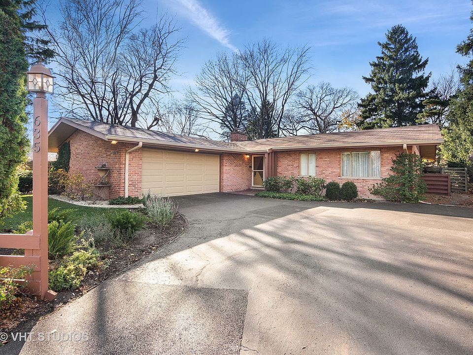 Do you love mid-century modern style? Then you'll appreciate the natural design elements in this single level home where 4 sliding doors bring the outside, in. Charming fenced yard surrounds you with shrubs and perennials. Customize the flooring for a unified feel. Vaulted living room with floor to ceiling gas fireplace welcomes you just in time for winter. Enjoy the functionality of the 4th bedroom or office. Plenty of storage in closets, attic and finished basement. Half bath in basement, too. Main AC (2019) Main furnace (2018). Back bedroom was an addition with its own system. If you have been looking in Wilmette for a ranch to personalize, here's your chance to make your dream home in your own style. It's immaculate and well-maintained by 2nd owner. Nice curb appeal right? Everything works. This is an Estate Sale, therefore sold AS-IS. Buyer pays Wilmette transfer taxes. Come for a visit!