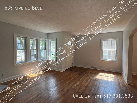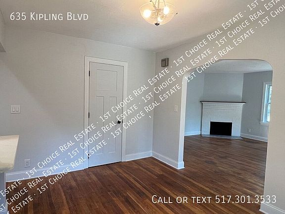 Welcome to 635 Kipling. This charming, well maintained duplex has been completely renovated and has 2 bedrooms and 1.5 bathrooms. Beautiful refinished hardwood floors throughout. Gas fireplace in the living room. Kitchen with breakfast bar is open to the formal dining room. The kitchen is fully equipped with all new appliances (range/oven/refrigerator/dishwasher/microwave). The half bath with a stackable washer/dryer set is located off the kitchen. The two bedrooms and the full bathroom are upstairs. Bedrooms have custom closets. Large walk-in closet in the master bedroom. Beautiful & timeless tile work in the full bathroom. Fenced back yard with patio, shared shed and mature landscaping. Parking for 2 vehicles on the parking pad, which is off of E Saginaw St (the duplex is located on the corner of Kipling & Saginaw). Unbeatable, East side location - next to Frandor, highway access, less than 10 minutes to MSU campus. This property does have central air conditioning. Tenant is responsible for all utilities. Tenant is responsible for lawn & snow maintenance. Pet friendly. Small dogs only (less than 15 lbs, limit 2). No cats allowed. $300 non-refundable pet fee. $25 monthly pet fee. No smoking allowed.