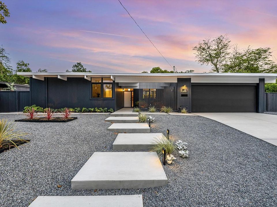 Experience the epitome of sophistication and luxury living with this Designer renovated Eichler. This stunning residence was expanded to 2,146 sq ft and includes 4 bed 2 bath and a bonus room. The large corner lot has beautiful mature trees and room to accommodate a lap pool. Everything has been carefully and tastefully chosen to bring the midcentury modern era to the new and intriguing world of today's living. Gracing the entrance are delicately placed Japanese maples and a zen inspired fountain. You will fall in love with all the attention to detail with the dramatic 10ft ceilings and the flow of all finishes. The open kitchen plan is the heart and soul of this house and includes 2 large islands and a see-through fireplace that divides the living/dining room combination. It's hard not to notice the exotic maple flooring throughout that tie everything together. The luxurious bonus room has custom cabinetry and a wall mounted fireplace inviting you to relax and enjoy the views. The long list of Sellers improvements means you can enjoy life at home TODAY not under construction! Don't miss this Eichler sanctuary!