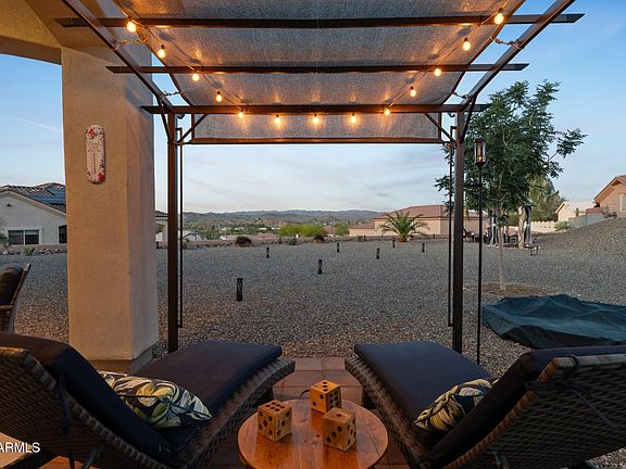 Welcome to this beautifully crafted 2018 custom-built home nestled in the highly desirable Mariposa Heights community. Offering 3 spacious bedrooms, 2 luxurious bathrooms, and a 2-car garage, this home is the perfect blend of comfort, elegance, and modern convenience. Situated on a quiet cul-de-sac, enjoy the peace and privacy of your own desert retreat while taking in breathtaking mountain views and unforgettable Arizona sunsets from multiple vantage points throughout the property. Step inside to discover thoughtful updates throughout, including warm, wood-look tile flooring and stunning granite countertops paired with rich, custom cabinetry. Kitchen has updated, gorgeous appliances making cooking a true pleasure. Oversized laundry room doubles as walk in pantry for added convenience. The kitchen and living areas flow seamlessly with modern lighting that adds a touch of sophistication and warmth. Both bathrooms are elegantly appointed with stylish tile work, double vanities, and a private toilet room for added functionality and comfort. Step outside to your personal oasis, meticulously landscaped with lush details, multiple covered patios equipped with ceiling fans and misting systems, and a charming gazebo perfect for relaxing or entertaining as you soak in the serene surroundings. Home furnishings are available for purchase as well! VA Assumable Loan! Don't miss your chance to own this exceptional home in Mariposa Heights, where style, comfort, and Arizona beauty come together.