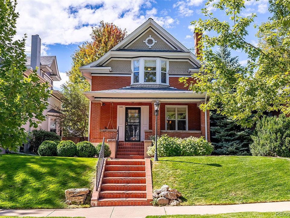 Built in 1913, this updated residence combines historic charm with modern upgrades throughout. Warm and inviting, the front porch opens into a welcoming foyer with a beautiful, classic staircase, a generous living room featuring a gas fireplace, as well as a spacious dining room with bay window. Rich in character with a fresh, modern style, the interior is filled with sunshine and accented by gorgeous hardwood floors, crown molding, high ceilings, plus a new powder room with designer wallpaper on the main level. The heart of the home is the great room, the perfect gathering place where hosting friends and family is a breeze. Open to a well-equipped kitchen, highlighted by attractive white cabinetry, stainless steel appliances, breakfast bar and adjacent breakfast area with built-in banquette seating. The mudroom offers a bench and built-in cabinetry, and leads outdoors to a delightful brick-pavered patio and private, treed backyard. Upstairs, the primary suite is a cozy retreat with a sky-lit vaulted ceiling, private balcony overlooking the yard, walk-in closet and new en suite bath with radiant floor heat. Two additional bedrooms are found on the second floor, each with a walk-in closet, plus a lovely full bath. Huge laundry room and ample storage are located on the lower level. Offering a rare chance to own a piece of Denver's vibrant culture within the East Seventh Avenue Historic District, this home is just minutes to nearby parks, Denver Botanic Gardens, Downtown, as well as the world-class dining and shopping of Cherry Creek.
