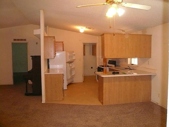 This is a 1993 manufactured home (28x60) with 3BR;2BTH; 1680 sq ft.; all on 1.31 ac. Covered porch entry into a spacious living room. Kitchen/combo dining area, plus a separate den (13x18) and living room (16x14). Ideal detached "insulated" garage/workshop (25x46) with electric, water, and side mount wood burning stove. Newer carpet in living room. All rooms have ceiling lighted fans. Seller added an enclosed 60 x approx 10 ft rear extension (same length as the home) that was originally used to accommodate their dogs. Has many possibilities! Seller will consider "all" fair offers.