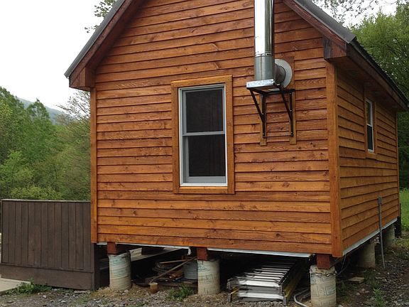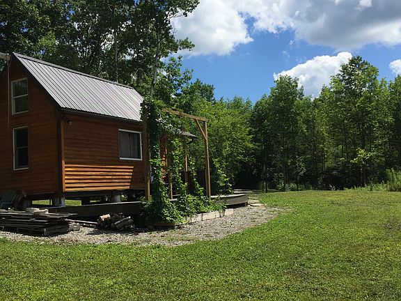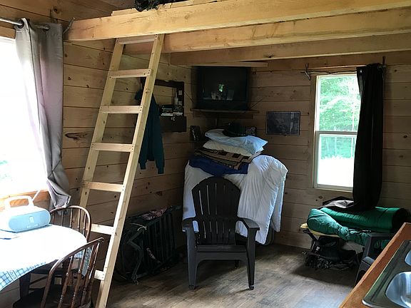 A little over 19 acres of land with cabin and deck, driveway, and electric. Cabin is wired with lights and receptacles. Driveway is about 550 feet long and extends to a very secluded area where cabin is located. Cabin was built in 2013/2014 and is fully insulated with tongue and groove pine on the inside. Cabin is 12' by 20' with a 10' by 12' loft. Has a wood stove and sink. Cabin overlooks gorgeous valley view and hang-glider launch. Land is all woods with beech, hickory, maple, and oak. Agricultural fields on either side of the lot. Tons of deer and turkey and hunting is awesome! Trails throughout. Spafford Creek runs along the back of the property and a smaller stream runs under the driveway from the front to back of the property. Comes with large 6 by 6' tower stand that is 15' in height (at the floor) and overlooks a swampy area that deer love. Gorgeous location for a new home as well. More pictures forthcoming.
