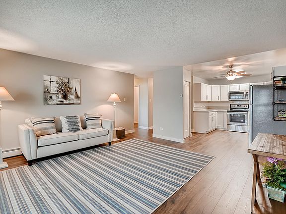 Beautiful completely remodeled 1380 sf floorplan in Windsor Gardens! Everything is done, just move right it! You gotta see this one! Amazing courtyard views! Building backs to highline canal & walking trail. 2 bed/2 bath + den which can be a 3rd bedroom or office. Kitchen features white shaker cabinets, quartz counters, tile backsplash, new fixtures, and all new stainless appliances. Bathrooms w/tile floors, new vanities, and fixtures. 3 new AC Units with remote controls. Waterproof laminate wood floors thru-out main living area. New paint. Enclosed screen lanai overlooking courtyard, 2 new vinyl slider doors included! Bonus storage room on same floor. Windsor Gardens is Colorado's Largest Age 55+ Active Adult Living Condo Community. Monthly HOA Dues include annual property taxes heat, water, sewer, trash, 24-hour patrolling community responders, and full time onsite management and grounds/building maintenance. The clubhouse amenities feature fitness room, indoor/outdoor pool, hot tub, sauna, billiards room, library, craft rooms for ceramics, sewing, woodworking, and more! Full time on-site activities department scheduling a full calendar of activities. Onsite 9 hole par 3 golf course, and restaurant, both open to the public! Garden plot program, private walking trail and nature preserve and more! FHA/VA approved. Close to restaurants, stores, shopping! Hurry! Make Windsor Gardens your home today! OWNER IS GIVING THE NEW BUYER A 55" SAMSUNG TV AS A GIFT AT CLOSING!