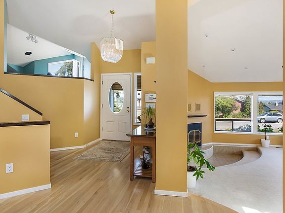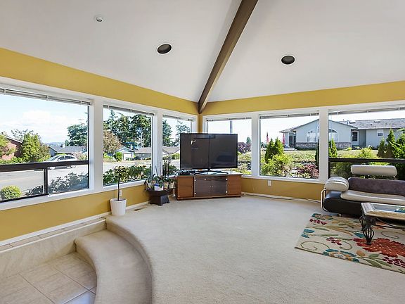 Spectacularly Designed home surrounded w/windows to take in the distant views of Cascade Mts. & Sound. Dramatic interior w/soaring vaulted ceilings & lofted office. Fabulous open architectural design. Master on the main w/custom tile bath, jetted tub & doors to back courtyard. Kitchen looks to Living, Family rooms & view deck. 2 lg bedrooms & full bath upstairs w/lofted office (can become 4th bedroom). French doors open most rooms to private backyard & patio. Close to town, schools & base.
