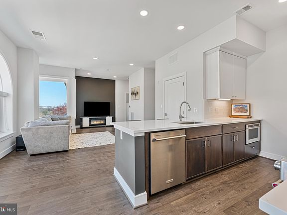 **Reduced Price**1 Br 1 Ba penthouse contemporary unit with 1 parking spot and 1 large storage unit included back on market! Can be offered furnished or unfurnished. Now for lease with direct views of the Mount Vernon Trail and the DC Monument in Old Town North offered unfurnished with option for furnished. Wake up to an oasis nestled just above the tree tops, with a direct view to what Old Town North has to offer - the National Landing Skyline, Washington D.C. Monument, Regan National Airport and more. This 2023 revamped top floor unit features 10' high ceilings throughout, an open floor plan, captivating arched windows and engineered hardwood floors throughout the unit. Modern kitchen features beautiful two-tone soft close cabinets, a full suite of Kitchen Aid appliances (gas range, oven, microwave drawer, refrigerator and dishwasher), white quartz countertops and stainless steel finishes. This master bedroom comes with additional built-ins in the closet and an extra closet that functions for more storage. Bathroom sports an oversized vanity with plenty of drawer and storage space and is equipped with a new shower tub. Additional 2 closets in hallway for extra storage and in-unit full size laundry makes living here a breeze! This unit is equipped with in-unit washer and dryer, Ecobee thermostat. Amenities include a fully equipped gym, pet wash station, bike storage, bike repair station, conference rooms, library, and rooftop deck with 360 views of the best Old Town North has to offer. Amenities also include concierge and package room.