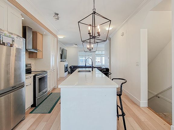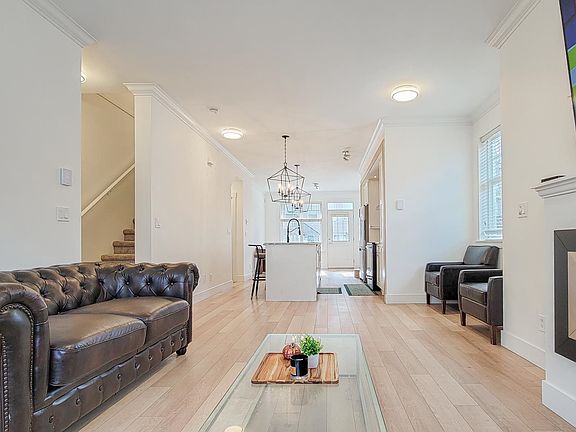 This stunning corner unit townhome offers an abundance of natural light with extra windows, creating a bright and inviting atmosphere. The modern kitchen features a tall pantry, sleek marble countertops, and a long island with bar seating—perfect for entertaining. Cozy up in the formal living room with an elegant fireplace, or enjoy the additional family room and den on the main floor. Additional upgrades include laminate flooring, epoxy-coated garage flooring, and modern lighting. Conveniently located near top-rated schools, shopping, and recreation, this home is a must-see!