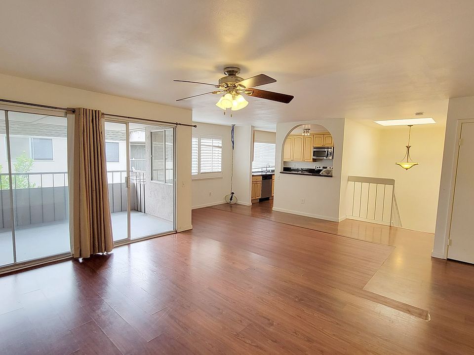 Fabulous Fashion Valley Townhouse. kitchen with stainless steel appliances.Spacious living room with balcony and separate dining space. Ceiling fans, laminate floors, recessed lighting. Large master bedroom with slider to private patio and open space. Washer, Dryer, and Fridge Included. Close to USD, Beaches, Malls, shopping, and restaurants. The community features an Olympic size pool, jacuzzi, Billards, game room, clubhouse with kitchen, BBQ, picnic areas, and playground