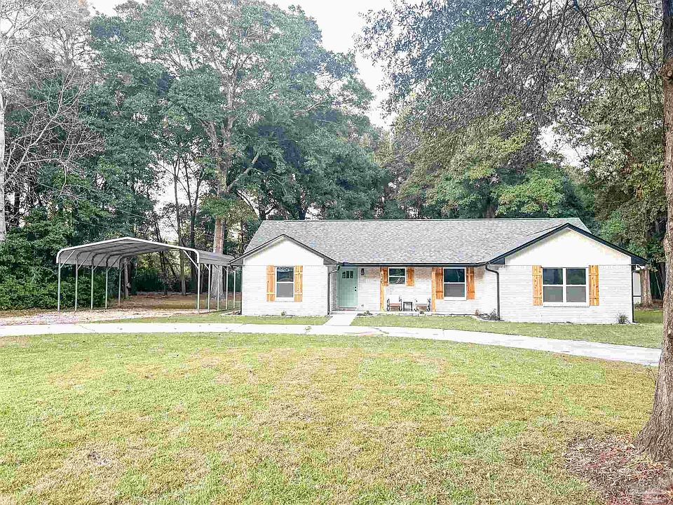 Welcome home to this beautifully remodeled 4 bedroom, 2 bathroom home nestled on 4 private acres right in the heart of Milton! Enjoy the perfect blend of modern comfort and country serenity. Close to shopping, dining, and schools, yet tucked away in a quiet neighborhood with no HOA. This move-in ready property has been completely updated, featuring brand new appliances, LVP flooring, and a new roof for lasting peace of mind. The spacious open concept floor plan creates a seamless flow from the living room to the dream kitchen, which showcases a gorgeous 8 ft island, new cabinetry, and stylish finishes. Perfect for entertaining or family gatherings. The primary suite offers a luxurious escape with a tiled walk-in shower and ample closet space. Each additional bedroom is roomy and bright, providing plenty of flexibility for guests, family, or office space. Step outside to an expansive 15x30 back patio leading to a fire pit area. Perfect for evening relaxation or get togethers. A 12x12 shed and 22x20 carport provide plenty of storage for vehicles, trailers, and recreational toys. Watch deer and wildlife right from your backyard. A rare find this close to town! This property truly has it all. Space, privacy, modern upgrades, and no HOA restrictions. Don’t miss your opportunity to own this beautiful in-town retreat at 6350 Greenwood Dr, Milton, FL 32570. Schedule your showing today!