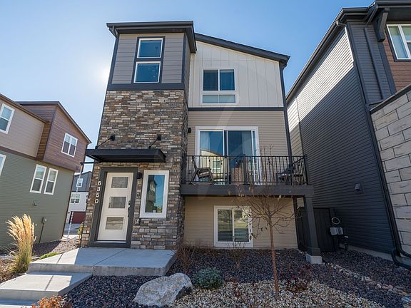 Urban style living in The Midtown at Wolf Ranch Collection. This single family, low maintenance home has modern touches and colors throughout. Entering this modern home you are welcomed by gleaming hard surface flooring throughout. The main level living room has an open concept with loads of natural light, access to the balcony and great space for entertaining. The dining space flows nicely into the elegant kitchen that provides a spacious island, a plethora of cupboard space, a walk in pantry and stainless steel appliances. This level is rounded out by a half bathroom. The spacious primary bedroom has an attached ensuite with large walk in shower, double vanity and a large walk in closet. This level also has a full bathroom, second bedroom and laundry. Lower level conveniently offers an attached double garage for those cold Colorado winters along with an office/flex space. Close to shopping, schools and restaurants! Easy commute from Powers Blvd, community trails and parks for outdoor enjoyment.