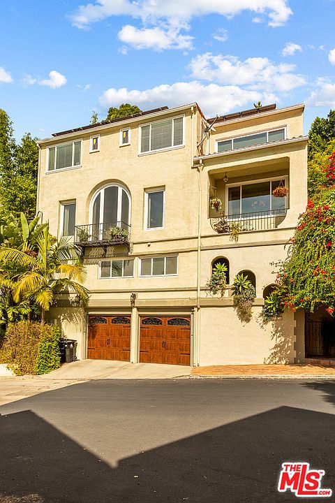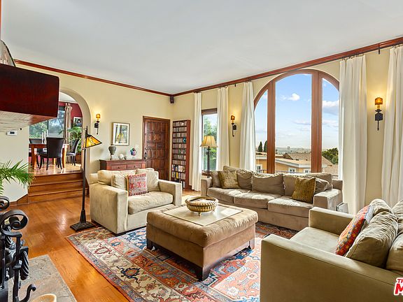 See link "Virtual Tour." Beautifully restored 1927 Spanish w/lots of original bells and whistles! Spacious 3 beds 2.5 ba + seperate office. South facing w/ big city views to ocean & mountains. Grand living room includes large gas/woodburning fireplace, hardwood flrs, high ceilings w/ huge picture glass . Original folding full glass doors opens to an enchanting private covered patio w/wood burning & gas fireplace & pond/fountain.Original wall sconces & chandeliers.Upgraded electric/plumbing. Restored Kitchen incls an Okeefe & Merritt stove, granite counter tops & tumbled marble backsplash. 1/2 bath and laundry on first level.Upstairs large Primary suite W/awesome city/ocean views, hardwood floors, marble ba double sinks. Light filled office w/views 2 beds share newer marble bath. Flat grassy yard!. Two car garage has car charger. Full SOLAR OWNED BY SELL