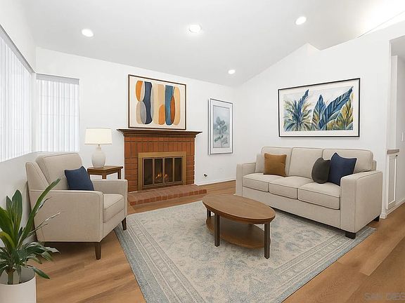 Beautifully renovated single family home. Move-in ready and centrally located in the heart of San Diego close to freeways, attractions, shopping, and restaurants. 3 bedroom/2 bath with finished garage. All new drywall, flooring, cabinetry, lighting and fixtures. Primary bedroom with ensuite bath and walk-in closet. Second bath conveniently located for second and third bedroom/office den and guest use. Large private backyard with patio off dining area. All appliances convey. Property virtually staged.