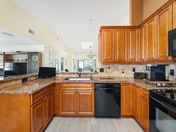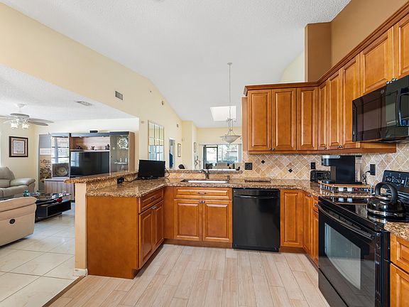Move right into this light, bright 2/2 villa with convertible den, screened, air conditioned Florida room, and attached 1 car garage. Fully updated, open plan kitchen with granite counters and real wood cabinets. Fully updated master bath with granite counter, updated vanity, new tile. Updated guest bath with granite counter, updated vanity and new tile. Ceramic tile floors throughout. Two walk-in closets in primary bedroom. Separate shower in primary bath. Laundry room inside with full size washer and dryer. Owner has paid clubhouse assessment in full. Huntington Pointe is a 24/7 guard gated 55+ community. The 53,000 square foot clubhouse has been fully redesigned. The 600 seat theater offers year round movies and live entertainment. Indoor heated pool. 4 outdoor heated pools 4 outdoor heated pools with hot tubs. Gym. Billiard rooms. Aerobics room. Card rooms. Bocce court. Pickleball courts. Tennis courts. Numerous clubs and organized activities. And a cafe that's open for breakfast and lunch every day.