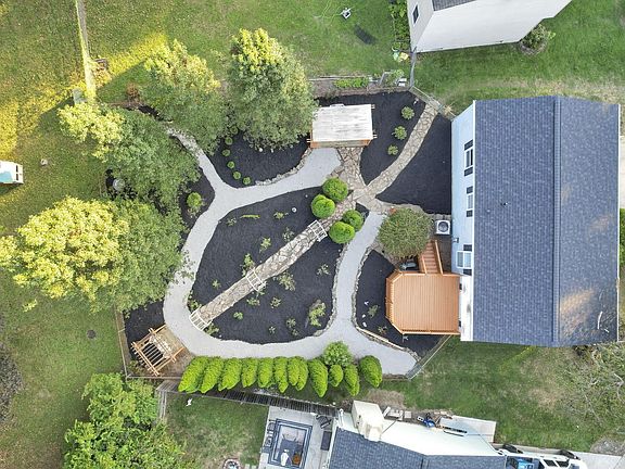 Step outside to enjoy a deck overlooking the park-like backyard, complete with lush landscaping and two gazebos—perfect for entertaining or relaxing.