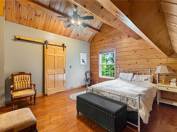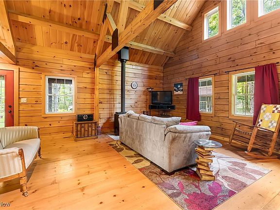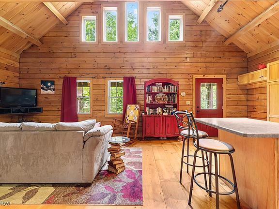 Step inside to be greeted by the grandeur of vaulted ceilings and an open floor plan that enhances the spaciousness of the home. The great room, with its soaring ceilings, is anchored by a beautiful fireplace, creating a cozy focal point. The living area flows seamlessly into a well-appointed kitchen with hickory cabinets and plenty of counter space. The warm, natural wood tones throughout the home evoke a cozy, welcoming atmosphere, making it the perfect place to unwind. Outside, a beautiful wrap-around porch invites you to enjoy the surrounding wooded landscape, offering the perfect spot for morning coffee, evening relaxation, or outdoor entertaining. This porch, combined with the natural beauty of the property, creates an inviting outdoor living space that’s hard to resist. The home also features an expansive basement, offering a fantastic opportunity to expand your living space. You won't want to miss this Custom Log Home!