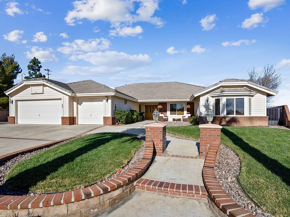 Welcome to this single story POOL home w/Guest house and RV Garage, on an expansive lot within the Sterling Ridge subdivision in Quartz Hill. With a quiet and peaceful cul-de-sac position as well as sensational mountain views and a great hillside location, this is your chance to really have it all. Step inside where a luxurious four-bedroom, two-bathroom plus bonus room that could be a 5th bedroom. A host of formal and informal living spaces promise a room for every mood and occasion whether you relax by the fire in the sunken living room, retreat to the den or gather in the family room with a bar. For the cook, there is a big and bright U-shaped kitchen with a peninsula, suite of appliances and an abundance of storage. A three-car garage, a laundry room and a hall bath are also on offer along with a detached RV-sized garage and a pool house/guest house with the 4th bathroom and can be rented for additional income! You can enjoy the city light views and fourth of July fireworks views from this property! Newer roof. Solar panels will keep down utility costs and there is also a whole-house soft water system and easy-care gardens. All of this is located just a short drive from Avenue N restaurants and retail, is close to Antelope Valley Mall and close to all the amenities you could need. Buyer to verify all information.