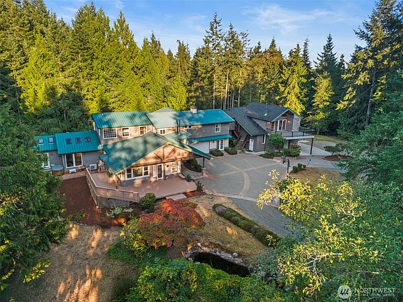 Experience flexible living at its finest w/an impressive 2.6-acre custom estate. 1 level main home w/quality finishes; hardwood, tile, granite, quartz, tongue in groove ceilings & handsome millwork. Professional remodel of main level includes a center island w/solid quartz waterfall counters, stainless appliances, & new cabinetry. Upstairs, a wing with a 2nd kitchen & 2 baths is ideal for multi-generational living or guests. Self-contained detached apartment sits above a large, heated shop. All 3 units offer separate, fully equipped living spaces, & could be used for long or short term rentals. Elevator access to the upper level. Minutes from both Kingston & Bainbridge ferries, & downtown Poulsbo, w/schools, restaurants, shopping.