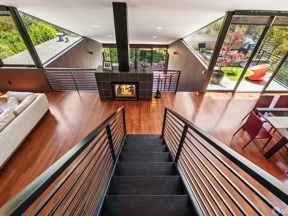 This is your chance to own a exceptional property at a great price! Built by award-winning designer Art Busse. Completed in 2001, this 4,046 sq ft custom residence was inspired by Renzo Piano's coastal studio in Italy. Set on nearly 0.25 acre, the 4-bed, 3-bath home blends architectural vision with livable comfort. Interiors feature Brazilian cherry wood floors, rich natural textures, and 2 floating staircases connecting all 3 levels. The top floor includes the entry and two-car garage with EV charging. The main level offers a chef's kitchen, dining and living areas, a bedroom and full bath all centered around a 2-sided fireplace. A deck off the dining room enhances indoor-outdoor flow. Downstairs, the primary suite, 2 bedrooms, full bath, and a large family room open to a balcony with panoramic Bay and hillside views. Additional features include Toto bidet toilets in all 3 baths, high-end appliances, zoned A/C and heating, laundry room, 34 solar panels, and ample storage. Set in one of the area's most desirable hillside neighborhoods, Skyline Blvd offers privacy, natural beauty, and quick access to regional parks. Just 5 minutes drive from Montclair Village and 15 mins to UC Berkeley.