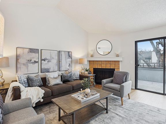 Charming Top-Floor End Unit with Modern Updates! Discover this beautifully updated 1-bed, 1-bath, 731 sq. ft. offering privacy, soaring vaulted ceilings, and an inviting deck off the living/dining area with additional storage. The cozy fireplace with a gas starter enhances the living space, while the spacious walk-in closet in the bedroom provides ample storage. Enjoy a fully renovated kitchen featuring brand-new grey-tone cabinets, quartz countertops, and premium stainless-steel appliances, including a BOSCH dishwasher, vented LG microwave & LG electric range. The freshly updated bathroom boasts a new vanity, and the entire home shines with new designer LVP flooring and fresh paint throughout. Convenient in-unit laundry accommodates stackable appliances for added ease. This home includes assigned parking—one covered and one uncovered spot—within a well-maintained community offering multiple pools, tennis courts, a clubhouse, and an exercise room. Perfectly situated for commuters, with easy access to I-880, the Dumbarton Bridge, and Silicon Valley shuttle stops. Just minutes from Newpark Mall, Pacific Commons, local dining, and scenic wildlife trails. Don’t miss this incredible opportunity to own a move-in-ready, like-new home in a prime Newark location—schedule your tour today!