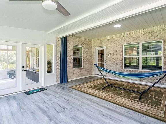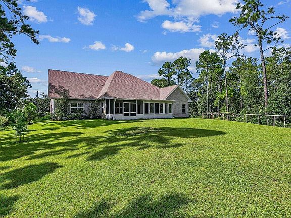Impressive 4 bedroom,4 bath, plus 484 sq-ft Guest Suite, 350 sp-ft sun room, 3 Car Garage, 4398 (4048 + 350) sq-ft new home on 2 Acres across from East Bay. Spacious Open Concept floor plan has 9-ft to 20-ft ceilings, porcelain tile flooring throughout, and 7-ft doors, Large second floor Guest Suite has two baths, one bedroom, huge bonus room and kitchenette with custom soft close cabinets. The first level spacious living room is open to the breakfast bar and has access to covered porch. The kitchen has a walk-in pantry, soft close solid wood cabinets with crown, quartz counter tops, island cooktop with range hood, double ovens, drawer microwave, dishwasher, wine cooler and breakfast room. The master bath features quartz double vanity, tiled walk-in shower with double shower heads, 60' jetted tub, and two walk-in closets. The first-floor guest bedrooms share a bath with quartz counters and tiled tub. Second floor bath #3 has custom shower. Other features are covered porch, dimensional roofing, irrigation system with well, exterior lights, low-e windows with fabric shield protection, 15 RHEEM HVAC, 80-gallon water heater, exterior coach lights, 5 inch baseboards, and garage door openers. Construction completed in September 2021. Conveniently located to schools, shopping and beaches.