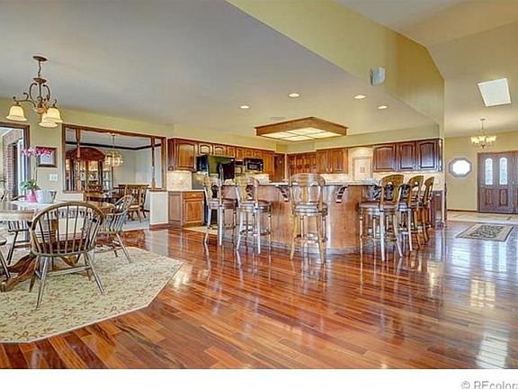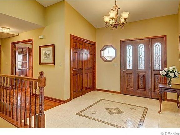 IMPECCABLY CRAFTED CUSTOM ESTATE ON 3.95 ACRES DESIGNED TO CAPTIVATE THE PANORAMIC MOUNTAIN VIEWS FROM PIKES PEAK TO LONGS PEAK - AWESOME SUNSETS & NIGHT LIGHTS. 8 CAR ATTACHED GARAGE & ZONED 4 HORSES. THE WELCOMING FOYER FEATURES A MOSAIC TILE INLAY WHICH COMPLIMENTS THE DRAMATIC WARMTH OF EXOTIC TIGERWOOD FLOORS. A LARGE ENGAGING KITCHEN WITH AN ABUNDANCE OF SLAB GRANITE, BIG PANTRY & OPENS TO THE SPACIOUS GREAT ROOM & LARGE CORNER CUSTOM FIREPLACE. STUNNING WOODWORK THROUGHOUT. THIS IS AN ENTERTAINER'S DREAM & INCLUDES A FORMAL DINING ROOM, A LIGHT & BRIGHT SUNROOM, A HUGE WALK-OUT WITH GAME AREA, BAR, 2 ADDITONAL BEDROOMS, FULL BATH & AMPLE STORAGE. THE LUXURIOUS MASTER EN-SUITE FEATURES A CEASARSTONE TUB EMBELLISHED WITH NEW FRENCH BRASS FIXTURES, DUAL HEAD SHOWER & SEPARATE CLOSETS. AN ABUNDANCE OF UPGRADES & DETAILS INCLUDING FRENCH DOORS, BAY WINDOWS & WIDE HALLS. SPACIOUS LAUNDRY/MUD ROOM.TOP QUALITY ARCHITECTURAL FINISHES. BEST DESCRIBED AS "COMFORTABLE COUNTRY ELEGANCE".