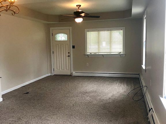 Nice twin located just outside of Bath in East Allen Township. Across from Jacksonville Park and walking distance to the Nor-Bath Trail. Features large fenced in yard with shed, nice paver patio off of 2 car detached garage and deck off of the three season sun room. Parking for three cars in the driveway as well as parking in the two car detached garage. Garage also features a second floor for storage. Home has two bedrooms, 1.5 baths, large third floor great for storage and washer and dryer in the basement. Kitchen features a dishwasher, refrigerator and eat-in area. Living room and dining room are open for a spacious feeling. Owner pays for sewer and trash. Tenant responsible for all other utilities. Tenant responsible for mowing/yard maintenance and snow removal. Proof of renter's insurance required before move in along with security deposit and first month's rent.