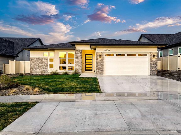 Best Value on the market in this area! Discover this like-new single-story home in South Meridian’s sought-after Sky Mesa subdivision. Backing to no rear neighbors, it offers privacy and a peaceful backyard setting. The open floor plan features high ceilings, large windows, and a spacious great room with a sleek modern gas fireplace. The kitchen boasts quartz countertops, double ovens, Bosch appliances, a large pantry, and a generous dining area. The luxurious primary suite includes a spa-like bath with a tiled shower, dual vanities, and elegant finishes. With three bedrooms plus a dedicated office, the split-bedroom layout ensures flexibility and privacy. A 3-car tandem garage with utility sink and ample storage adds convenience. Just minutes from The Village, I-84, top schools, and shopping, residents also enjoy resort-style pools, a playground, and scenic walking paths. Experience modern Idaho living in this connected, amenity-rich community.