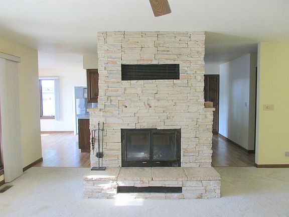BEAUTIFUL RIVERFRONT VIEWS AND WATER ACCESS! This charming home is settled along the Rock river and boasts ninety feet of waterfront, a shared access drive and boathouse for your pontoon, fishing boat or jet skis. A large multi-level deck with firepit is perfect for relaxing or entertaining. Inside the home, surrounding a large stacked stone double sided fireplace, is an open floorplan with a spacious living area and eat-in kitchen. Off of the kitchen is a gorgeous three season porch offering fabulous views of the river and includes a half bathroom. Make this home your oasis by the water! Appliances stay, including water filtration and softener.