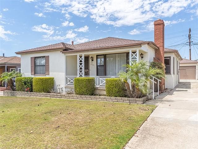 Traditional 3 bedroom and 1 bath single story home on 6,000 plus square foot lot. Welcoming front porch and well-manicured front yard. Living room features gorgeous hardwood floors, brick fireplace with classic white mantel and arched entry into formal dining area. Light and bright kitchen with adjacent laundry room, and powder room with granite counter tops. Three bedrooms one of which has sliding glass door access to covered patio/backyard, one full bathroom and large quiet and private backyard. Detached Garage is fully finished.