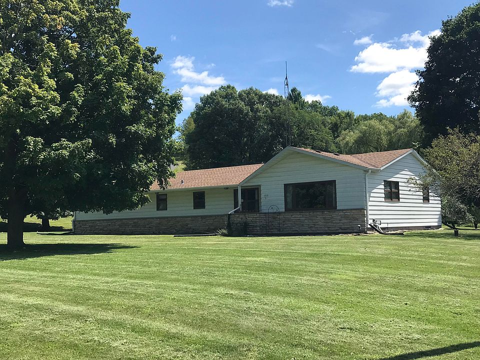 Move right into this nicely updated ranch style home with large kitchen/dining room area which includes a beautiful lannon stone fireplace and lots of kitchen cabinets. Great room is very spacious with additional lannon stone wall. Large bedrooms with lots of closet space, updated bathrooms, attached garage with great outside patio space for entertaining. Detached, heated 3-4 car garage/workshop with nearly 3 acres surrounding this home to enjoy. The lower level has an additional room for guests with a closet, huge bar, rec room with another beautiful lannon stone fireplace as well as additional space for you to use as needed and access to the outside. Enjoy the nature and wildlife right out your back door!