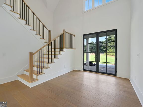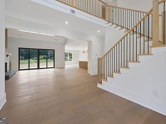 Welcome to this stunning NEW CONSTRUCTION home, nestled on a level and private 0.92-acre lot in an exclusive enclave of just five custom homes in an A+ Woodstock location. With a striking elevation and impeccable curb appeal, this residence offers refined luxury, thoughtful design, and energy-efficient features throughout. Step inside from the covered front porch to a vaulted family room anchored by a beautiful fireplace, featuring custom built-in cabinets and floating shelves on each side. A spectacular 16-foot sliding glass door opens to a spacious covered rear patio with its own cozy fireplace-ideal for entertaining or quiet relaxation while overlooking the private, level backyard, perfectly suited for a future pool. The main level features a luxurious primary suite with a spa-inspired ensuite bath, showcasing a zero-entry shower, designer tile, quartz countertops, and dual custom walk-in closets. A separate guest suite with its own zero-entry bath, a large laundry room, and a well-designed mudroom add everyday convenience. The gourmet kitchen is a showstopper with an oversized island, quartz countertops, a slide-in range, abundant cabinetry, and a separate dining or breakfast room for effortless entertaining. A stunning switchback staircase leads to the second floor, where you'll find two spacious bedrooms, each with its own ensuite bath, and a versatile bonus room perfect for a den, office, or playroom. Built with comfort and efficiency in mind, this home includes spray foam insulation, a tankless water heater, high-efficiency HVAC, and low-maintenance vinyl windows. Every corner reflects quality craftsmanship and luxurious detail-this is Woodstock living at its finest.