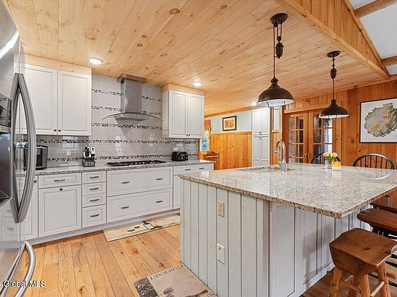 Step inside to discover a stunning brand new kitchen and focal point for culinary delights and gatherings with loved ones. The hardwood floors throughout are complemented by the knotty pine interior and vaulted ceilings, creating a cozy yet spacious ambiance.